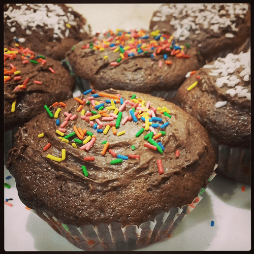 Формочи я не смазывала. Купила бумажные и выкладывала в них на 2/3. Отправить разогретую духовку. Выпекать примерно 25–30 минут на слабом огне. Проверять зубочисткой.