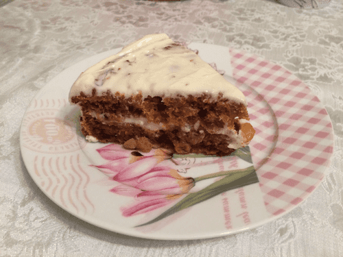 Пирог остудить до комнатной температуры, вынуть из формы и разделить вдоль на 2 коржа. Делаем начинку для торта: взбиваем сыр комнатной температуры с сахарной пудрой и ванильным экстрактом, перемешиваем до однородности. Смазываем начинкой нижний корж, накрываем вторым и обмазываем оставшимся кремом верх и бока торта. Крошками от обрезки коржей обсыпаем бока торта и украшаем верх по желанию.