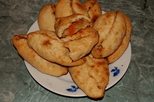 Пирожки. Берем небольшой шарик теста (если тесто прилипает к рукам, то руки можно смазать небольшим количеством растительного масла), разминаем в лепешку, кладем на середину лепешки начинку (количество начинки на ваше усмотрение) и склеиваем концы.