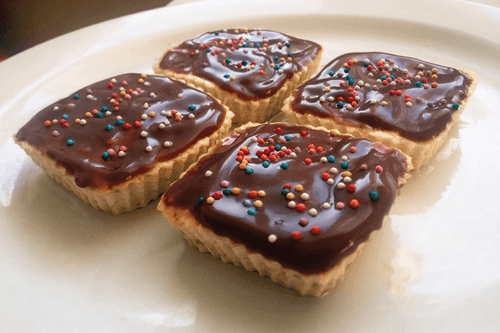 Разложить по формочкам, поставить выпекаться в в духовку на 30 минут при 180 градусах (в конце я полила их шоколадным пудингом и поставила в холодильник на 5 минут, чтобы охладились).
