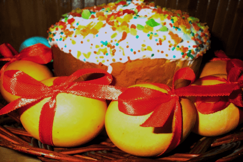 Пасхальный кулич на желтках с ванилью — это нежная, воздушная выпечка с богатым вкусом. История кулича восходит к древним славянским традициям, где он символизировал начало новой жизни. Желтки придают тесту насыщенный цвет и бархатистую текстуру, а ваниль — тонкий, сладкий аромат. Легкая сладость сахара и сочный изюм делают его идеальным праздничным угощением, дополняющим уютную атмосферу Пасхи. Подрумяненная корочка скрывает мягкую, пышную мякоть, а белковая глазурь с цукатами добавляет нотку свежести и хрустящей сладости. Кулич отлично сочетается с горячим чаем или молоком, наполняя дом теплом и радостью.