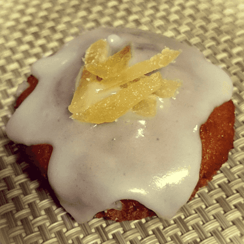 Остывшие маффины полить глазурью и украсить нарезанными цукатами имбиря. Дать застыть глазури примерно 30 минут.