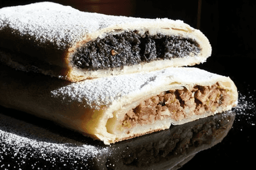 Штрудель из творожного теста с маком или яблоками — это изысканное угощение австрийской кухни, наполненное богатством вкусов и ароматов. Его тесто, нежное и воздушное благодаря творогу, раскрывает в себе гармоничное сочетание начинок: терпкий мак с нотками ванили и цитрусовой свежести, или сладкие яблоки, подчеркнутые пряностями и орехами. Это лакомство стало символом уютных семейных чаепитий и торжественных мероприятий. Исторически штрудель был любимым десертом европейских королевских дворов, а его популярность распространилась по всему миру. Подают его теплым, посыпанным сахарной пудрой, иногда сопровождая нежным ванильным соусом или шариком мороженого. Каждый кусочек этого блюда словно погружает в атмосферу венских кафе, где в каждом хрустящем слое чувствуется мастерство кулинарии.