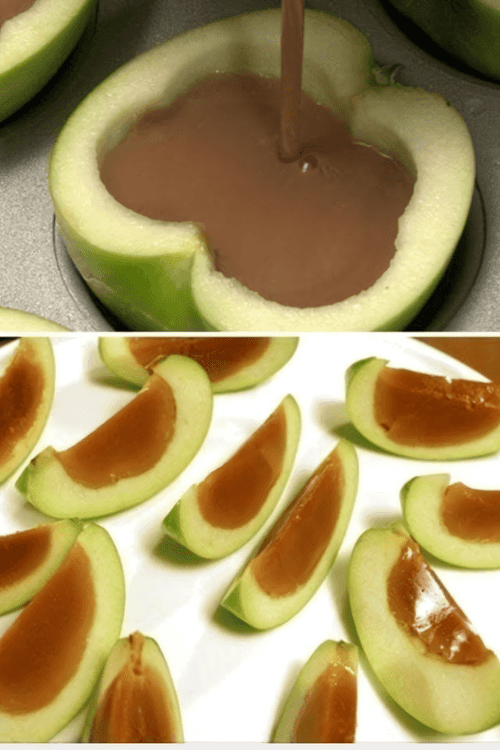 Когда начинка затвердеет, достаньте яблоки и порежьте на ломтики.