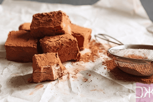 Когда зефир затвердеет, нарежьте его кубиками и обваляйте в какао.