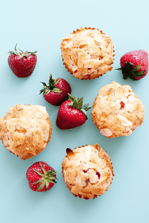 Клубничные маффины — это нежные, ароматные мини-кексы, пришедшие из американской кухни. Их история восходит к традиционным британским маффинам, но со временем они обрели новую форму и вкус благодаря добавлению фруктов. В этом рецепте клубника придает маффинам сочность и легкую кислинку, гармонично сочетаясь со сладостью теста и ванильным ароматом. Хрустящая карамельная корочка с миндалем добавляет текстурного контраста, делая выпечку еще более изысканной. Идеальны для утреннего кофе или послеобеденного чая, клубничные маффины прекрасно подойдут как десерт для уютных домашних встреч или праздничного угощения. Они легки в приготовлении, но восхищают своим насыщенным вкусом и аппетитным видом.