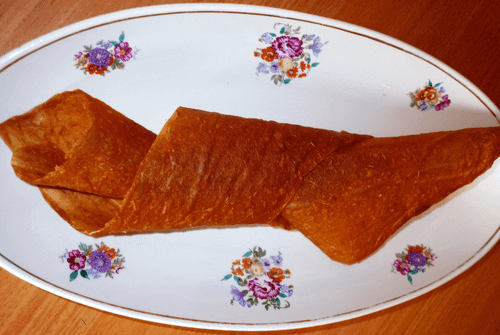 Сушить в приоткрытой духовке или в закрытой, но с включенным вентилятором, при температуре 100 градусов. Если слой получился толстым, можно перевернуть пастилу другой стороной, для этого ее следует сначала остудить, иначе пласт будет рваться.