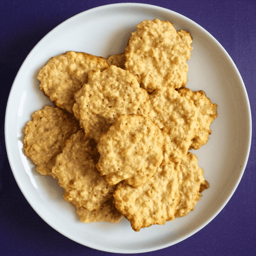 Овсяное печенье диетическое — легкий и ароматный десерт, восходящий к традициям американской кухни, где овсяные хлопья широко используются для создания питательных и полезных блюд. Это печенье сочетает нежную текстуру и легкую сладость тростникового сахара с глубокой овсяной ноткой. Сливочное масло придает ему мягкость, а ванильный сахар — утонченный аромат. Благодаря овсяным хлопьям и муке оно получается насыщенным и хрустящим, но при этом остается легким. Идеально для утреннего перекуса или вечернего чаепития, это печенье приятно сочетается с теплым молоком или ароматным чаем. Простота приготовления и сбалансированный состав делают его отличным выбором для тех, кто ценит полезную и вкусную выпечку.