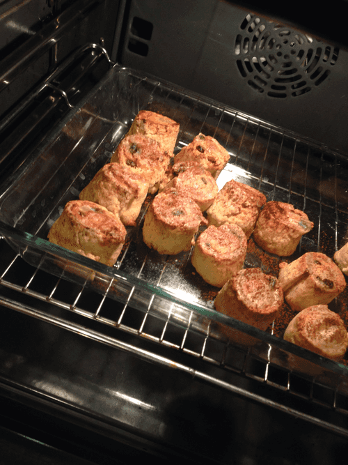 Нарезаем рулет поперек на ломтики толщиной 2 см. Выкладываем на выстланный пергаментом противень. Запекаем при температуре 200 градусов до готовности.
