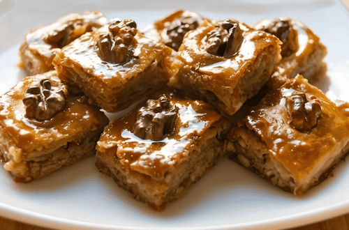 Пряная пахлава — это восточное лакомство, родом из Турции, известное своим насыщенным ореховым вкусом и ароматными специями. Её тонкие слои хрустящего теста, пропитанные сливочным маслом, сочетаются с нежной ореховой начинкой, которая благоухает кардамоном и корицей. После выпечки пахлава становится золотистой и хрустящей, а сладкий медовый сироп наполняет её глубиной вкуса. Это десерт с богатой историей: традиционно его готовят для праздников и семейных торжеств, когда хочется порадовать близких настоящей восточной сладостью. Каждый кусочек этой пахлавы раскрывает вкусовые грани древних рецептов, придавая моменту особую атмосферу уюта и наслаждения.