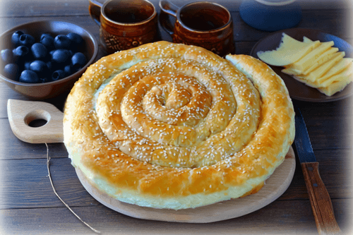 Слоеный пирог по-деревенски с фасолью и сыром – это душевное блюдо русской кухни, пропитанное уютом деревенского очага. Нежное, хрустящее тесто в сочетании с пикантным сыром, ароматной фасолью и оливками создает уникальную вкусовую гармонию. Кунжут придаёт пирогу аппетитную корочку, а свежая зелень освежает его аромат. Вдохновленный традициями деревенской выпечки, этот пирог идеально подходит для семейного ужина или посиделок с друзьями. Легкий в приготовлении, но изысканный на вкус, он отлично сочетается с чашкой травяного чая или бокалом белого вина. Это не просто блюдо, а настоящее кулинарное путешествие в мир уютных русских вечеров.