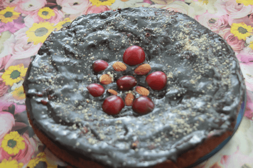 Глазурь: растопить шоколад на водяной бане. Добавить кофе или коньяк. Добавляем сливочные масло небольшими порциями и размешиваем так, чтобы глазурь стала глянцевой. Даем ей отдохнуть минут 15 и приступаем к декорированию торта.