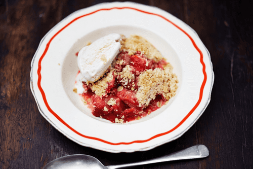 Безглютеновый крамбл с ревенем и клубникой