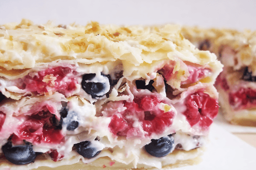 Пирог из слоеного теста со сметаной и ягодама