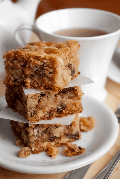 Блонди с грецкими орехами и шоколадом — восхитительное угощение американской кухни, бережно хранящее традиции уютной домашней выпечки. Этот десерт является альтернативой классическим брауни, но с насыщенным карамельным вкусом благодаря коричневому сахару. Орехи добавляют хрустящую текстуру, а сочетание белого и темного шоколада придаёт глубокую сладость и баланс. Блонди — идеальный выбор для тех, кто любит мягкие, тягучие десерты с контрастом вкусов и текстур. Его подают к чаю или кофе, дополняют мороженым или соусами, делая каждое угощение особенным. Блонди прекрасно подходит для уютных встреч и торжеств, становясь главным акцентом сладкого стола.