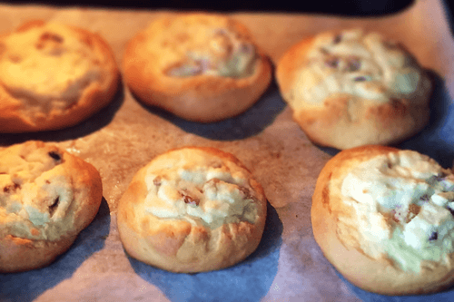 В каждой лепешке делаем углубление и кладём туда начинку. Даем ватрушкам расстояться минут десять.