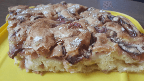 Затем фрукты залить тестом, оно должно заполнить все пустоты между дольками фруктов.