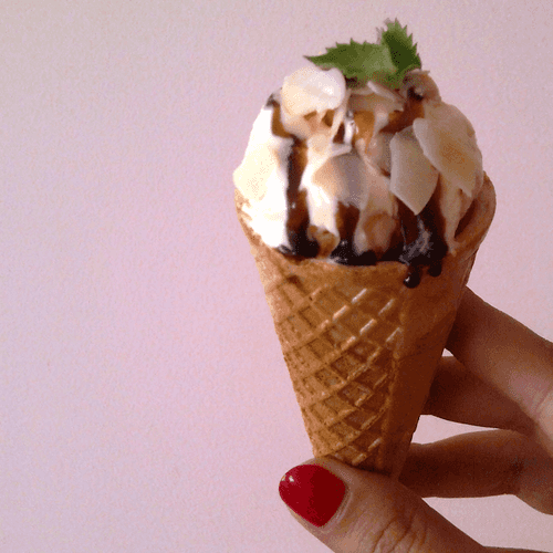 Подавать с бисквитом, печеными яблоками или орешками (мой вариант — с миндалем, бальзамическим соусом, медом и мятой) или в вафельном рожке.