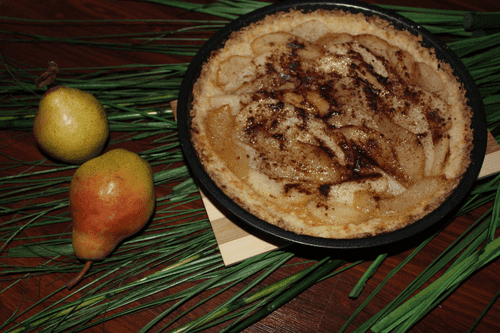 Вымытые груши нарезать продольными дольками. Нужно выбирать сладкие сочные сорта груш, НО, если в этом вопросе возникли сложности — это не беда. Нарезаете груши дольками, а затем карамелизуете около 3-х минут (на сковороде растопить немного сливочного масла, обжарить аккуратно дольки груш, добавив по вкусу мед/сахар и немного корицы, и вуа-ля).