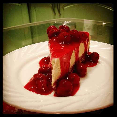 На утро можно наслаждаться вкуснейшим чизкейком, который можно посыпать ягодами (черничный, например) или нарезанными фруктами. Но больше всего мне нравится покупать десерт Dr. Oetker и поливать им. Он бывает вишневым (на картинке) и с лесными ягодами. Так же можно сделать вариации с желе сверху (например консервированные персики в желе). Все зависит от ваших желаний и фантазии.
