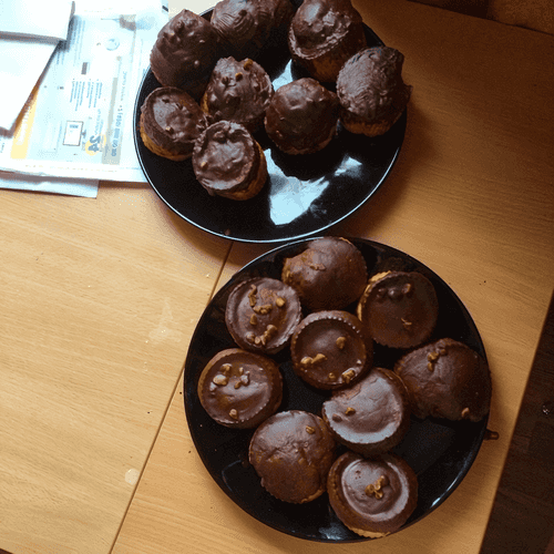 Для глазури шоколадной: топим 1 шоколадку (можно с дробленым орехом) + немного молока добавляем по необходимости, ждем когда чуть загустеет и кондитерской кистью покрываем сверху все поповеры.