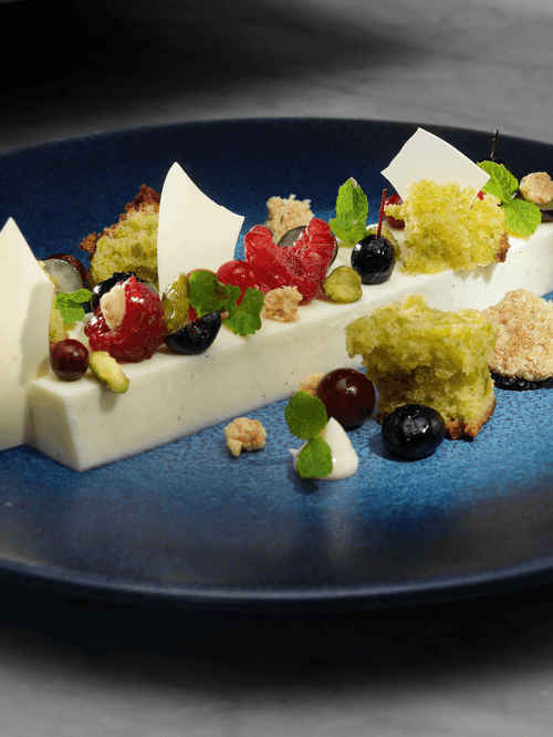 Йогуртовое желе с фисташковым кексом и ягодами – это утонченный десерт европейской кухни, который сочетает в себе нежность сливочного желе, воздушность миндально-фисташкового кекса и свежесть ягод. Его корни уходят в традиции французской гастрономии, где особое внимание уделяется текстурам и гармонии вкусов. Кремовый йогуртовый слой с нотками ванили и белого шоколада дарит прохладу, а кекс привносит хрустящую сладость фисташек и миндального марципана. Дополняют композицию сочные ягоды, придающие легкую кислинку, а мята освежает послевкусие. Этот десерт идеален для торжественного ужина или приятного летнего угощения, создавая элегантное гастрономическое наслаждение.