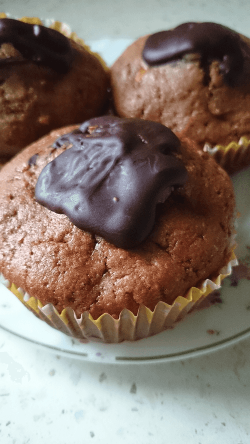 В жаропрочной миске растопить темный шоколад (можно на огне, можно на слабой мощности в микроволновке). Полить им маффины.