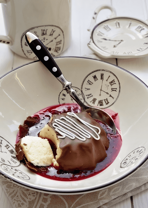 Растворить шоколад на водяной бане, полить им пирожные, дать шоколаду застыть.