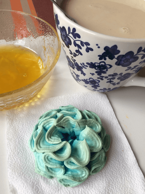 Добавляем краситель или чай матча и еще раз взбиваем до равномерного окрашивания массы.