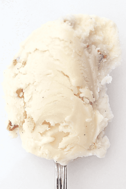 Заморозьте во фризере в соответствии с инструкцией. По желанию в последнюю минуту заморозки добавьте слегка измельченные в ступке 2 столовые ложки обжаренной гречневой крупы. Переложите мороженое в контейнер и отправьте в морозилку минимум на 4 часа до крепости.
