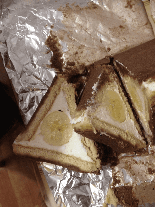 Ставим торт на 2-3 часа в холодильник, лучше на ночь, затем снимаем фольгу и нарезаем тортик дольками.