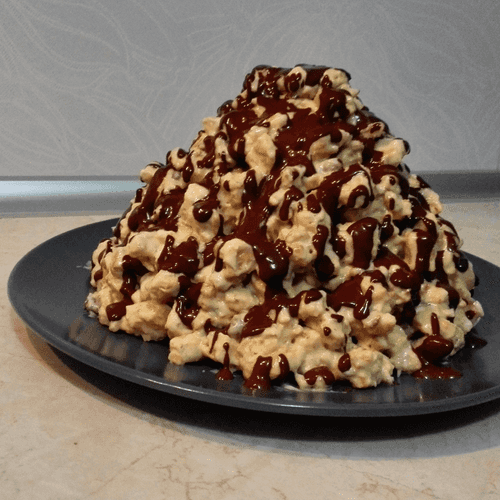 На плоскую тарелку руками выложить торт в форме пирамидки. Сверху посыпать маком. Убрать торт в холодильник на несколько часов перед подачей.