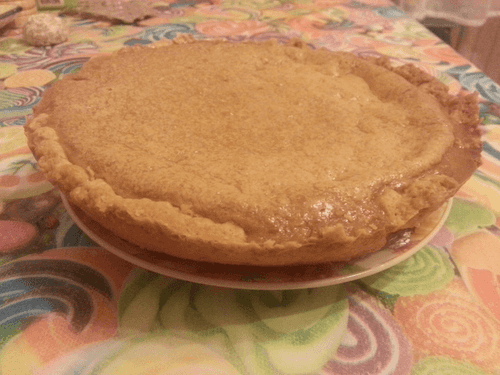 Достаем основу пирога, выливаем туда начинку, уменьшаем температуру духовки до 160 С, и отправляем пирог в духовку на 1 час.