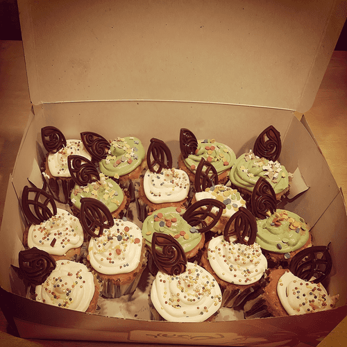 Вкладываем в формочки бумажные стаканчики для кексов, наполняем тестом чуть более, чем наполовину, и ставим в горячую духовку (175 С) на 30 минут. Даем остыть и можно заниматься кремом или глазурью.