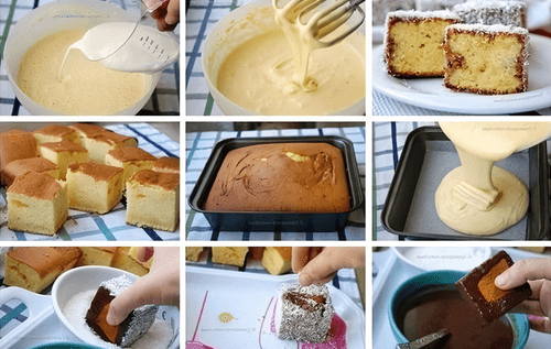 обмакните с четырех сторон в кокосовую стружку.