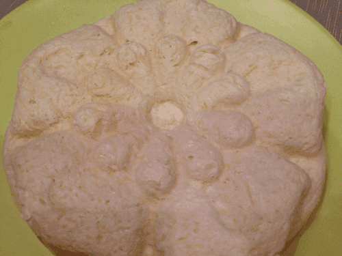 Выложить в форму и выпекать в СВЧ-печи примерно 15 мин на максимальной мощности.