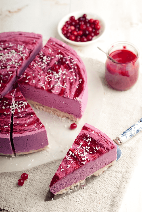 Вегетарианский брусничный торт без выпечки