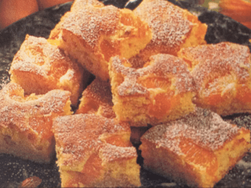 Смешать лимонный и мандариновый соки и пропитать ими пирог. Перед подачей на стол посыпать его сахарной пудрой.