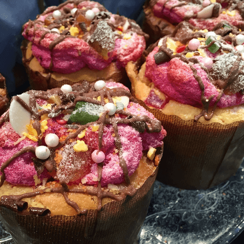 Достаем куличи из духовки и пока безе мягкое, украсить кулич цукатами, шоколадом, орехами.