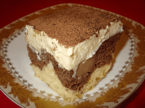 Готовый пляцок поливаем охлажденным кремом и подаем к столу.