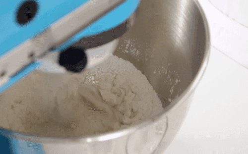 Муку смешать с солью, влить четверть стакана теплой воды и перемешать.