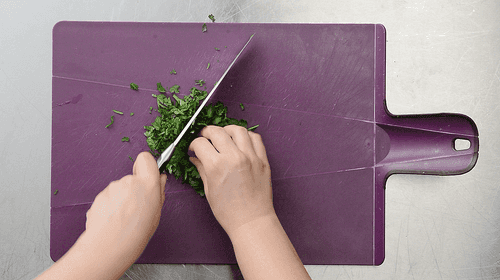 Измельчить зелень.
