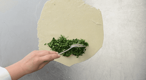 Выложить начинку на половину раскатанного теста, накрыть второй половиной и запечатать края с помощью вилки. Важно добиться того, чтобы внутри осталось как можно меньше воздуха.