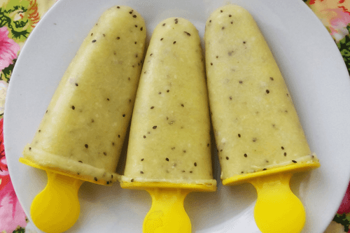 Соединить пюре из фруктов и рисовую массу, разлить по формочкам и отправить в морозильную камеру на 3-4 часа