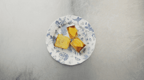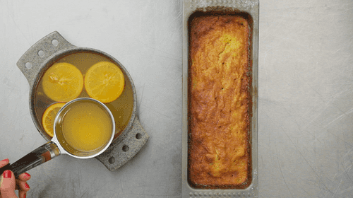 Выпекать 35-40 минут до красивого золотистого цвета. Когда кекс готов, проткнуть его несколько раз шпажкой и полить остывшим сиропом. Так пирог пропитается особенно хорошо. Для подачи пирог стоит разрезать на 12 квадратных ломтиков и каждый из них украсить четвертью апельсина.