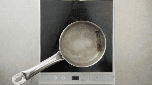 В небольшом сотейнике смешать 1,5 стакана воды, половину сахара, положить палочку корицы и довести до кипения. Через 5 минут снять сироп с огня и залить им томленый апельсин. Дать остыть.