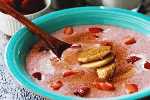 Летний бананово-клубничный суп — это легкое и освежающее блюдо, идеально подходящее для жарких дней. Его корни берут начало в американской кухне, где любят экспериментировать с холодными супами. Нежная сладость спелых бананов гармонично сочетается с ягодной кислинкой клубники, а сливки и молоко придают мягкость и бархатистую текстуру. Легкая пряность корицы добавляет изысканности, создавая тонкий аромат. Этот суп прекрасно подойдет как десерт или освежающий перекус, его можно подавать с мятой и свежими ягодами для дополнительного вкусового акцента. Простота приготовления делает его доступным даже для начинающих кулинаров, а охлажденная подача превращает его в настоящее спасение в летнюю жару.