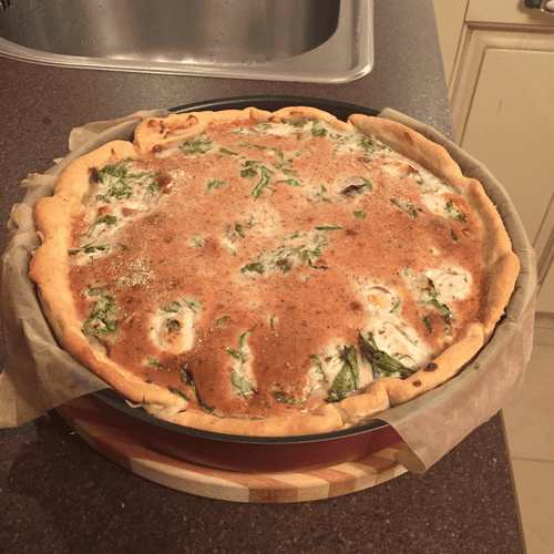 Лоранский пирог с лососем, рикоттой и шпинатом