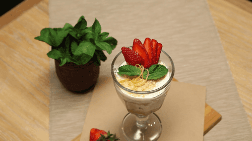 Затем выложите следующий слой из медово-мятной клубники. Так чередуйте слои до заполнения стакана. Уберите десерт в холодильник на 4-5 часов. Очень вкусно и быстро! Приятного аппетита!