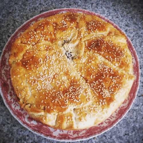 Пирог с кабачками и щавелем — это прекрасное сочетание свежести и нежности, характерное для русской кухни. Этот пирог напоминает традиционные деревенские блюда, где зелень и овощи всегда играли важную роль. Кабачок придаёт начинке сочность, а щавель — легкую кислинку, уравновешенную мягкостью брынзы. Хрустящее слоёное тесто создаёт контраст текстур, делая каждый кусочек восхитительным. Такой пирог идеально подходит для летних обедов или уютных семейных вечеров, его можно подавать как самостоятельное блюдо или дополнение к лёгкому салату. Он хорош как в горячем, так и в охлаждённом виде, а добавленный кунжут придаёт ореховый оттенок вкусу. Этот пирог — настоящий гимн сезонным продуктам, подчёркивающий богатство русских кулинарных традиций.